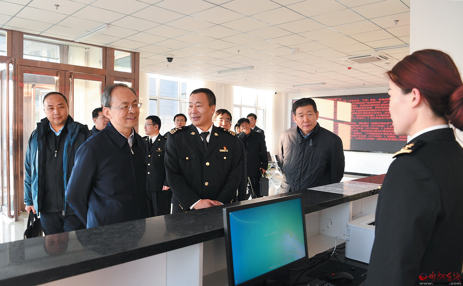 自今年10月份開關(guān)以來,忻州海關(guān)結(jié)合忻州外向型經(jīng)濟(jì)發(fā)展實(shí)際,緊緊圍繞市委市政府相關(guān)工作部署,積極為忻州外貿(mào)穩(wěn)定發(fā)展服務(wù),保障產(chǎn)業(yè)鏈供應(yīng)鏈穩(wěn)定,打造忻州對外開放平臺(tái),筑牢國家安全屏障,為促進(jìn)忻州經(jīng)濟(jì)高質(zhì)量轉(zhuǎn)型發(fā)展作出了貢獻(xiàn)。在海關(guān)報(bào)關(guān)大廳,鄭連生與工作人員進(jìn)行交流,向他們了解進(jìn)出口業(yè)務(wù)開展情況,鼓勵(lì)他們要不斷強(qiáng)化監(jiān)管、優(yōu)化服務(wù),為企業(yè)提供更高效、便捷、優(yōu)質(zhì)的服務(wù),促進(jìn)地方外向型經(jīng)濟(jì)發(fā)展。在消防控制室和實(shí)驗(yàn)室,鄭連生察看了各種專業(yè)設(shè)備配置運(yùn)行情況,了解了出入境檢驗(yàn)檢疫等相關(guān)工作情況。他希望忻州海關(guān)繼續(xù)著眼經(jīng)濟(jì)社會(huì)發(fā)展大局,弘揚(yáng)海關(guān)優(yōu)良作風(fēng),發(fā)揮海關(guān)職能作用,創(chuàng)新海關(guān)監(jiān)管制度,依法守好國門,推動(dòng)通關(guān)便利化,全面提升服務(wù)對外開放的能力和水平,幫助企業(yè)做大做強(qiáng)。