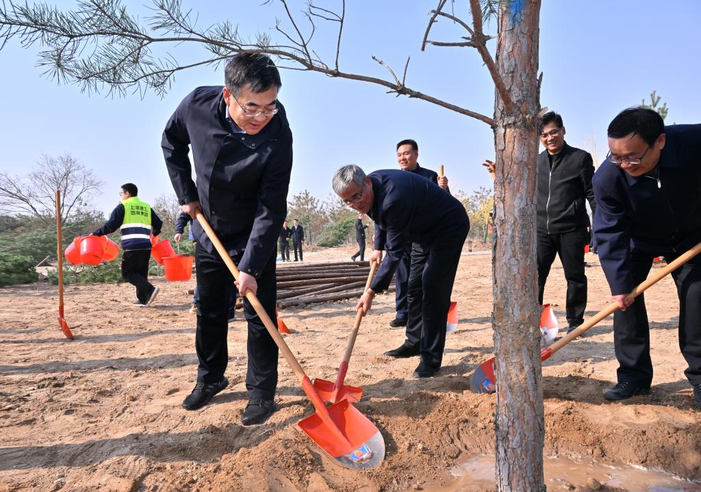 當(dāng)日上午,朱曉東一行抵達(dá)牧馬河生態(tài)公園植樹點(diǎn),首先聽取忻府區(qū)牧馬河生態(tài)公園項(xiàng)目總體規(guī)劃情況匯報(bào),詳細(xì)了解牧馬河流域生態(tài)修復(fù)工程項(xiàng)目進(jìn)展情況。隨后,大家拿起鐵鍬、水桶等工具,走向植樹地點(diǎn),分工協(xié)作、配合默契,鏟土、移苗、扶苗、澆水、踩實(shí)……植樹現(xiàn)場繁忙而有序,一派熱火朝天景象。春風(fēng)過處,一株株新栽種的苗木錯(cuò)落有致、迎風(fēng)挺立,萌發(fā)著無限生機(jī)和希望。