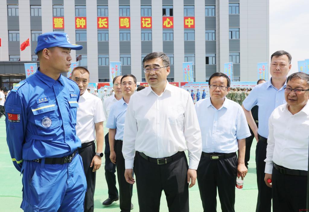 檢查消防救援大隊、礦山救援隊和藍天救援隊的應急裝備器材。范濤 攝
