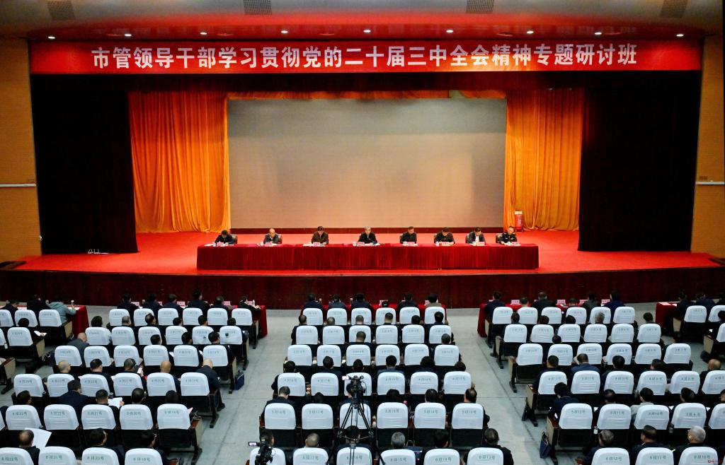 10月9日,市管領(lǐng)導干部學習貫徹黨的二十屆三中全會精神專題研討班開班。市委書記朱曉東出席開班式并作動員講話。他強調(diào),要深入貫徹落實黨的二十屆三中全會和省委十二屆八次全會、市委五屆七次全會精神,高舉改革開放旗幟,堅定扛牢使命任務(wù),牢固樹立“發(fā)展是硬道理、業(yè)績是新?lián)?、交賬是軍令狀”的工作理念,秉持“負責任、動腦筋、講良心”的工作要求,開拓創(chuàng)新、奮發(fā)有為,不斷開創(chuàng)我市進一步全面深化改革新局面,奮力譜寫中國式現(xiàn)代化忻州篇章。市人大常委會主任王珍出席開班式。市委常委、秘書長溫建軍主持開班式。市委常委,市人大常委會、市政府、市政協(xié)負責同志,市中級人民法院院長,忻州職業(yè)技術(shù)學院黨委書記,各縣(市、區(qū))委書記出席開班式。