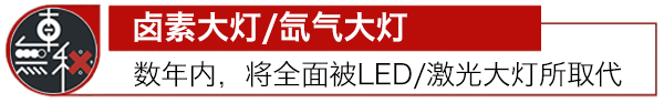 未來(lái)數(shù)年內(nèi),汽車鹵素大燈和氙氣大燈也面臨消失的威脅,隨著LED車燈技術(shù)的興起,甚至激光車燈的崛起,或?qū)⒙裨犭瘹獯鬅簦驗(yàn)槠錈艄庑Ч?,同時(shí)更節(jié)能。