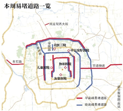 隨著近期氣溫下降,感冒等季節(jié)性疾病高發(fā),各大醫(yī)院就診人數(shù)增多,朝陽(yáng)安貞地區(qū)、西城月壇地區(qū)、東城王府井地區(qū)的交通壓力較大,預(yù)計(jì)工作日上午時(shí)段,兒童醫(yī)院、協(xié)和醫(yī)院、中日友好醫(yī)院、友誼醫(yī)院、北醫(yī)三院等醫(yī)院就診人數(shù)增多,周邊交通壓力較大。