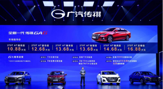 8月23日,全新一代傳祺GA6在成都正式上市。全新一代傳祺GA6帶來(lái)了6個(gè)版本,提供赤焰紅、冰海藍(lán)、珠光白、鈦金色、典雅黑、星光銀等6種顏色,售價(jià)為10.88萬(wàn)元-16.88萬(wàn)元,另有6大尊享政策:凡在10月31日前購(gòu)買新車,可享受1萬(wàn)元起首付、至高1萬(wàn)元貼息、至高5000元置換補(bǔ)貼、5年免費(fèi)無(wú)限流量,以及3年10萬(wàn)公里質(zhì)保+贈(zèng)送2年5萬(wàn)公里延保,首任車主還享受8年免費(fèi)代步車服務(wù)+免費(fèi)道路救援。