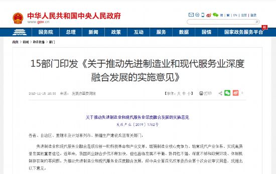 《關(guān)于推動(dòng)先進(jìn)制造業(yè)和現(xiàn)代服務(wù)業(yè)深度融合發(fā)展的實(shí)施意見》