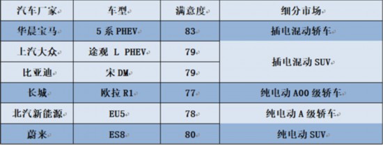 中國質量協(xié)會表示,市場競爭和質量持續(xù)提高促使我國新能源汽車用戶滿意度指數(shù)大幅提升,尤其是高續(xù)航里程及中高端產品受到用戶青睞。測評數(shù)據(jù)顯示,續(xù)航里程越高的產品,滿意度也更高。主流合資品牌向插電混動汽車市場投放成熟的中高端產品,這些產品的滿意度水平相對更高。