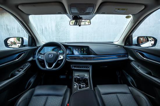 內(nèi)飾方面,長安新能源CS55純電版搭載了10.25寸雙聯(lián)大屏設(shè)計(jì),支持AI小安、在線娛樂、車載微信、手機(jī)無線充電、索尼音響、四路環(huán)視行車記錄儀以及遠(yuǎn)程控制等功能。車門把手、貫穿式空調(diào)出風(fēng)口等處都加入了藍(lán)色元素裝飾,用以展示其新能源車身份。在用料上,新車使用了能明顯提高檔次的軟質(zhì)材料、皮質(zhì)包覆和鋼琴漆飾板,為用戶帶來全新豪華智慧出行體驗(yàn)。