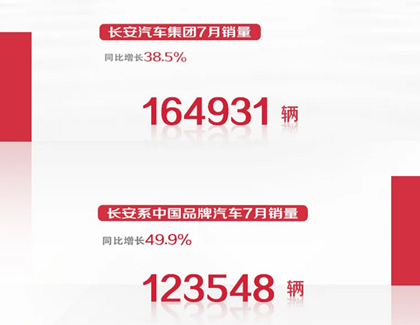 新華網(wǎng)北京8月8日電 8日,長(zhǎng)安汽車(chē)對(duì)外公布的數(shù)據(jù)顯示,2020年7月延續(xù)上升勢(shì)頭,長(zhǎng)安汽車(chē)單月整體銷(xiāo)售164931輛,同比增長(zhǎng)38.5%。其中,長(zhǎng)安系中國(guó)品牌汽車(chē)7月銷(xiāo)量達(dá)到123548輛,同比增長(zhǎng)達(dá)49.9%。