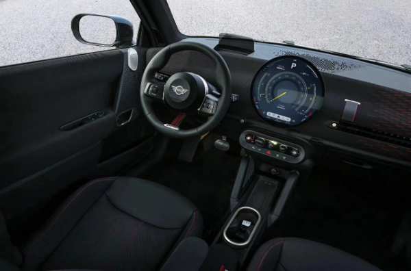 車(chē)內(nèi)最醒目的當(dāng)屬行業(yè)首推的圓形OLED中控屏,擁有獨(dú)特的外貌和更加鮮艷潤(rùn)澤的色彩,240毫米直徑剛剛好,超薄的屏幕精致又堅(jiān)固。第九代MINI操作系統(tǒng)的界面充滿了整個(gè)圓屏,所有元素與圓屏高度適配,操作簡(jiǎn)單觀感舒適就像智能手機(jī)一樣,并洋溢著濃濃MINI調(diào)性。7種身臨其境的“MINI體驗(yàn)?zāi)J健笨晒╇S意選擇,不但會(huì)調(diào)整車(chē)輛性能,還融入了新的MINI聲效世界,以及精巧布置的光影。
