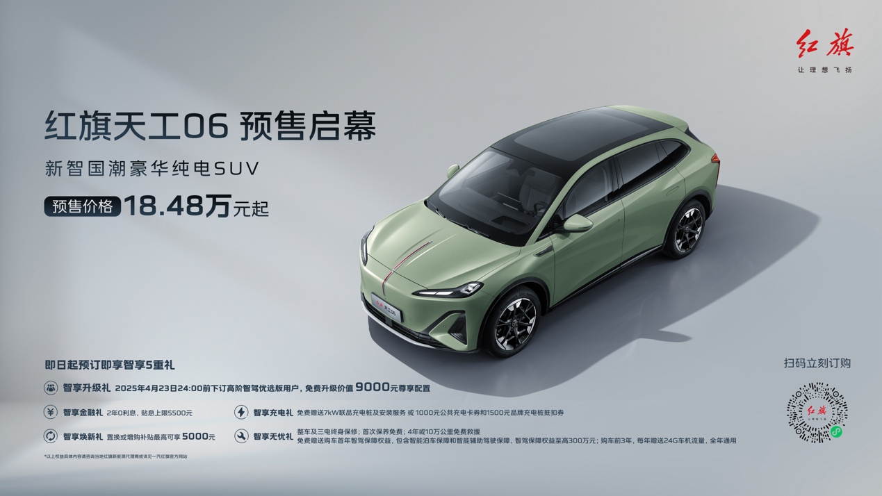 天工05智能化體驗(yàn)堪稱“空降第一梯隊(duì)” 天工06定位新智國(guó)潮豪華純電SUV,除搭載了與天工05相同的司南智駕系統(tǒng)和靈犀座艙外,還配備了專屬超級(jí)適時(shí)智能四驅(qū)系統(tǒng),擁有毫秒級(jí)的四驅(qū)介入響應(yīng),既可為用戶提供卓越的四驅(qū)駕乘體驗(yàn),又能讓用戶享受兩驅(qū)的極低電耗。此次紅旗品牌智能體驗(yàn)日天工06正式開啟預(yù)售,預(yù)售價(jià)格18.48萬元起,并帶來豐厚的“智享五重禮”預(yù)訂權(quán)益。