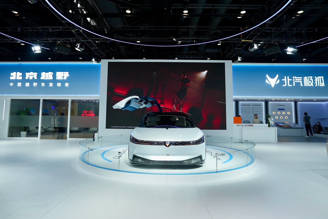 本屆科博會,北汽集團旗下北汽極狐、北京越野、享界汽車三大自主乘用車品牌參展。北汽極狐全新概念車77°,外觀兼具轎跑式姿態(tài)與MPV的實用空間,內部搭載全場景座椅模式、可收納式方向盤、UX Band下一代智慧交互界面,性能可在氣動模式與越野模式之間自由切換,重構與顛覆未來移動出行。北汽極狐新阿爾法S5,最高續(xù)航里程達到708公里,是15萬級續(xù)航最長、續(xù)航最真的純電轎車,搭載寧德時代神行電池,可實現(xiàn)最大5C充電倍率,15分鐘充電里程可達525公里?!霸龀逃才蒘UV之王”BJ40增程,圍繞“超級硬派、超級增程、超級越野、超級智享、超級安全”五大核心優(yōu)勢,實現(xiàn)多項行業(yè)領先,在滿油滿電情況下實現(xiàn)1200公里的綜合續(xù)航,上市以來穩(wěn)居“新能源方盒子”銷量榜首。北汽與華為共同打造的享界S9增程版,CLTC綜合續(xù)航達1355公里,WLTC百公里油耗僅為5.93升,無感啟停、無感發(fā)電,百萬豪車配置打造30萬級最強豪華科技轎車。