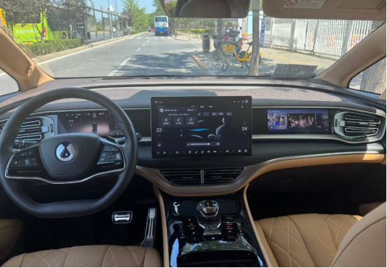 進(jìn)入車內(nèi),騰勢D9以“雙色豪華”為主題,提供云峰棕、曠達(dá)米等多元配色方案,搭配山海百納真木飾板與NAPPA真皮座椅,營造出媲美百萬級豪車的座艙氛圍。中控臺采用15.6英寸懸浮式大屏與10.25英寸全液晶儀表的組合,搭載騰勢Link超智能交互系統(tǒng),支持全場景語音控制、多屏共享及10種情景模式切換,操作流暢度與響應(yīng)速度均達(dá)到行業(yè)頂尖水平。