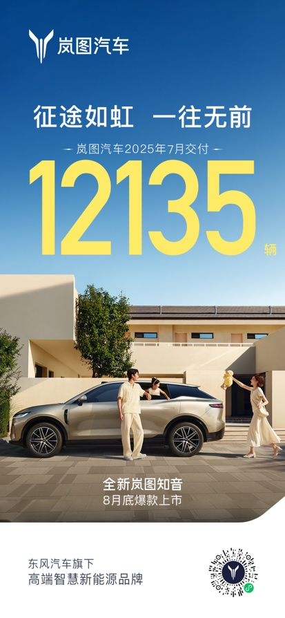 嵐圖汽車CEO盧放表示:“在用戶的支持下,嵐圖汽車7月延續(xù)高質(zhì)量發(fā)展態(tài)勢,嵐圖夢想家穩(wěn)居銷量冠軍,全新上市的嵐圖FREE+也快速獲得市場認(rèn)可,這進(jìn)一步堅定了我們的發(fā)展信心。8月,我們將更進(jìn)一步提速生產(chǎn)交付、升級服務(wù)體驗、加強用戶交流,并推出新產(chǎn)品——全新嵐圖知音,為用戶帶來更多優(yōu)質(zhì)選擇,為品牌發(fā)展注入更強動能。”
