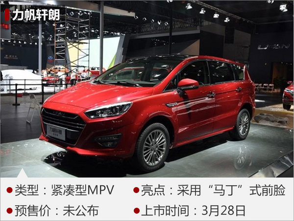 在2016年11月舉行的廣州國際車展上,力帆汽車對外發(fā)布了全新MPV—軒朗,其“馬丁”式前臉設(shè)計令人印象深刻,同時運動化輪圈與下沉式車頂?shù)拇钆湟彩窍嗟靡嬲谩?nèi)飾方面,力帆軒朗以黑色為主,中控臺下方按鍵布局較為簡潔,實用性較高。力帆軒朗搭載了1.5L渦輪增壓和2.0L自然吸氣兩款發(fā)動機,前者匹配的是8速自動變速箱或5速手動變速箱,后者則匹配的是5MT或CVT變速箱。新車將于3月28日正式上市。