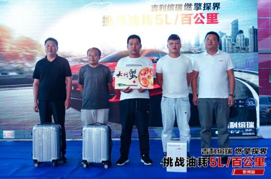 8月31日,吉利繽瑞燃擎探界—挑戰(zhàn)油耗5L/百公里在忻州沃成正式拉開帷幕,比賽從忻州沃成吉利4S店出發(fā),終點(diǎn)為代縣雁門關(guān),全賽程近120公里,賽段包含城市道路、高速公路、208國(guó)道等,模擬了最真實(shí)的駕駛路況,最終武先生以5.08L/百公里的油耗成績(jī)拿下本次比賽的節(jié)油王稱號(hào)!