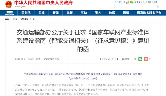 同日,交通運輸部公開發(fā)函,廣泛征求對《國家車聯(lián)網(wǎng)產(chǎn)業(yè)標(biāo)準(zhǔn)體系建設(shè)指南(智能交通相關(guān))(征求意見稿)》(以下簡稱《征求意見稿》)的意見。其中,對進(jìn)一步明確標(biāo)準(zhǔn)制修訂重點,以及形成統(tǒng)一、協(xié)調(diào)的國家車聯(lián)網(wǎng)產(chǎn)業(yè)標(biāo)準(zhǔn)體系架構(gòu)作出部署。