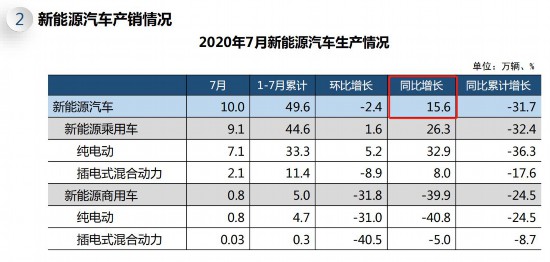 圖片來源:中國汽車工業(yè)協(xié)會(huì) 具體來看,7月份,乘用車產(chǎn)量為172.9萬輛,同比增長13.2%,環(huán)比下降3.9%;銷量為166.5萬輛,同比增長8.5%,環(huán)比下降5.6%;商用車產(chǎn)銷47.2萬輛和44.7萬輛,環(huán)比下降10.4%和16.6%,同比增長70.3%和59.4%;新能源汽車產(chǎn)銷分別完成10萬輛和9.8萬輛,環(huán)比下降2.4%和5.5%,同比增長15.6%和19.3%。
