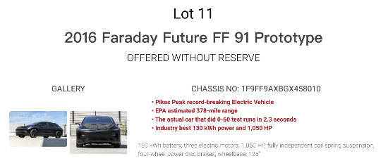 | 兩輛FF91原型車被掛網(wǎng)拍賣 |
