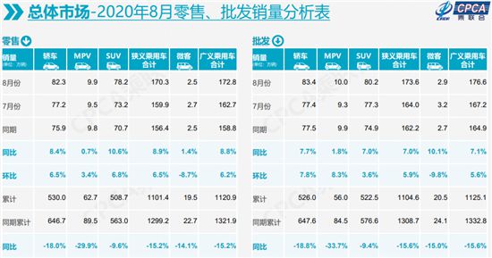 乘聯(lián)會秘書長崔東樹認為,8月環(huán)比7月零售銷量增長6.5%,與成都車展帶動一輪新品集中推出、上市有關(guān),加之廠商在淡季終端促銷力度加大,提早催熱了8月市場。但在月初,由于多數(shù)汽車主機廠集中休假,加之長江沿線洪澇災(zāi)害的影響,延緩了車市零售回升速度;隨著開學(xué)前購車潮的來臨,車市從中旬開始逐步火爆,大型展會陸續(xù)開展,以及全面的第三產(chǎn)業(yè)恢復(fù),帶來了更強的消費信心、持續(xù)的GDP向好,以及消費內(nèi)循環(huán)動力。
