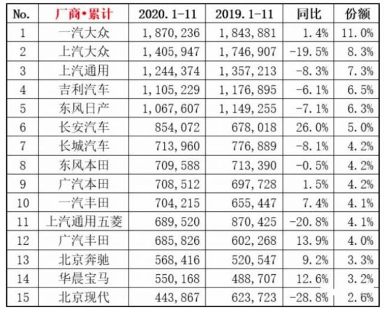 具體來看,如果最后一個不出意外,一汽-大眾、上汽大眾和上汽通用將繼續(xù)成為中國市場年度銷量前三大乘用車企。