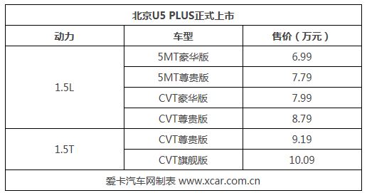 | 北京U5 PLUS正式上市 售6.99-10.09萬(wàn)元 |