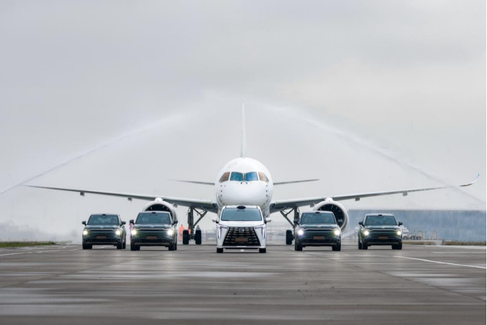 現在,飛機與汽車準備來一次近距離接觸,主角就是廣汽傳祺和C919。2025年3月7日,珠海航展中心,“千里智行 始于向往”傳祺向往車系正式發(fā)布。發(fā)布會現場,國產大飛機C919“傳祺向往號”滿載著嘉賓來到現場,并在傳祺向往S7、M8領航下,穿過象征民航界最高禮儀的“水門禮”,開進汽車發(fā)布會。