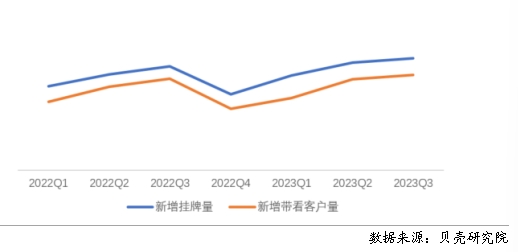 根據(jù)貝殼研究院數(shù)據(jù),全國重點(diǎn)40城三季度房客源成交周期分別為56.7、11.5天,房源成交周期環(huán)比減少2.1天,同比增加2.7天;客源成交周期環(huán)比延長1天,同比延長1天。隨著個(gè)人租賃房源供應(yīng)的增加,疊加保障性租賃住房、市場(chǎng)化集中式租賃房源的增加,個(gè)人業(yè)主出租房源出租速度減緩。從庫存房源來看,今年1-9月租賃庫存房源量均呈現(xiàn)同比增加的趨勢(shì),與此同時(shí),租客租房面臨的選擇項(xiàng)增多,租客對(duì)于租賃房源可選類型和房源量均有增加。
