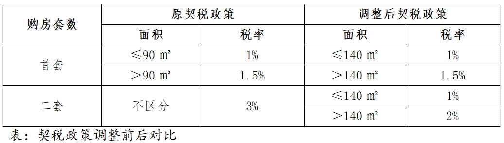 契稅方面,對(duì)個(gè)人購(gòu)買(mǎi)家庭唯一住房(家庭成員范圍包括購(gòu)房人、配偶以及未成年子女,下同),面積為140平方米及以下的,減按1%的稅率征收契稅;面積為140平方米以上的,減按1.5%的稅率征收契稅。對(duì)個(gè)人購(gòu)買(mǎi)家庭第二套住房,面積為140平方米及以下的,減按1%的稅率征收契稅;面積為140平方米以上的,減按2%的稅率征收契稅。