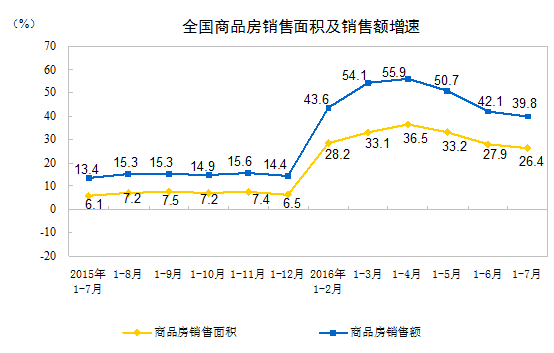 7月末,商品房待售面積71382萬(wàn)平方米,比6月末減少34萬(wàn)平方米。其中,住宅待售面積減少415萬(wàn)平方米,辦公樓待售面積增加26萬(wàn)平方米,商業(yè)營(yíng)業(yè)用房待售面積增加196萬(wàn)平方米。