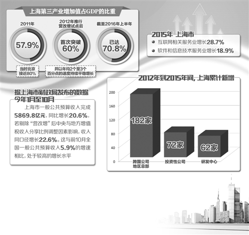 記者從上海市稅務局了解到,2012年推行營改增試點后,第三產(chǎn)業(yè)占GDP比重首次突破60%,并以年均2個至3個百分點的速度持續(xù)平穩(wěn)增長。截至2016年上半年,該比重已達70.8%。