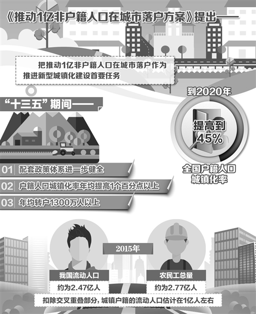 推動(dòng)1億非戶籍人口在城市落戶,有利于促進(jìn)社會(huì)公平,有利于助推經(jīng)濟(jì)增長(zhǎng),也有利于讓人民群眾共享改革成果。在這一進(jìn)程中,要充分體現(xiàn)“以人為本”,充分尊重群眾意愿。同時(shí),也要加快財(cái)政配套機(jī)制改革,切實(shí)提高城鎮(zhèn)化的速度和質(zhì)量—— 如何推動(dòng)1億左右農(nóng)業(yè)轉(zhuǎn)移人口和其他常住人口等非戶籍人口在城市落戶,使有能力在城鎮(zhèn)穩(wěn)定就業(yè)和生活的農(nóng)業(yè)轉(zhuǎn)移人口舉家進(jìn)城落戶,是我國(guó)推進(jìn)新型城鎮(zhèn)化面臨的迫切任務(wù)。不久前,國(guó)務(wù)院辦公廳印發(fā)了《推動(dòng)1億非戶籍人口在城市落戶方案》(以下簡(jiǎn)稱《方案》)。 有關(guān)專家在接受記者采訪時(shí)表示,推動(dòng)1億非戶籍人口在城市落戶,必須充分尊重群眾自主定居意愿,把落戶的選擇權(quán)真正交給農(nóng)業(yè)轉(zhuǎn)移人口、交給非戶籍人口。同時(shí),也要充分發(fā)揮財(cái)政手段激勵(lì)作用,抓緊補(bǔ)齊公共服務(wù)短板。 避免淪為造城運(yùn)動(dòng) 根據(jù)《方案》,“十三五”期間,城鄉(xiāng)區(qū)域間戶籍遷移壁壘加速破除,配套政策體系進(jìn)一步健全,戶籍人口城鎮(zhèn)化率年均提高1個(gè)百分點(diǎn)以上,年均轉(zhuǎn)戶1300萬人以上。 目前,在我國(guó)流動(dòng)人口中,既有農(nóng)業(yè)轉(zhuǎn)移人口,也有城鎮(zhèn)戶籍人口。2015年,我國(guó)流動(dòng)人口約為2.47億人;農(nóng)民工總量為2.77億人,跨鄉(xiāng)鎮(zhèn)的外出農(nóng)民工為1.69億人,扣除交叉重疊部分,城鎮(zhèn)戶籍的流動(dòng)人口估計(jì)在1億人左右。 國(guó)家行政學(xué)院經(jīng)濟(jì)學(xué)教研部主任張占斌教授說,過去許多地方的城鎮(zhèn)化以修樓蓋房為主,但人口的城鎮(zhèn)化沒有同步跟上,造成很多地方出現(xiàn)“空城”“鬼城”。此次國(guó)務(wù)院發(fā)文重點(diǎn)部署1億非戶籍人口在城市落戶,有利于切實(shí)提高城鎮(zhèn)化質(zhì)量,避免城鎮(zhèn)化淪為“造城運(yùn)動(dòng)”,也可以讓更多人共享新型城鎮(zhèn)化的發(fā)展成果。 “根據(jù)《方案》,不管是農(nóng)業(yè)轉(zhuǎn)移人口還是城鎮(zhèn)間轉(zhuǎn)移人口,都可以根據(jù)自身?xiàng)l件和居住城市的實(shí)際,確定自己能否落戶、是否要落戶。如此一來,流動(dòng)人口有了更明確的預(yù)期,才能更好地發(fā)揮城鎮(zhèn)化在擴(kuò)內(nèi)需中的作用。”中國(guó)城市和小城鎮(zhèn)改革發(fā)展中心政策研究處處長(zhǎng)王大偉表示,由于戶籍制度附帶著巨大的公共福利,在很大程度上也是一種身份的象征,也是城鄉(xiāng)二元結(jié)構(gòu)的重要標(biāo)志?!斗桨浮芬蠓砰_放寬落戶條件,實(shí)現(xiàn)新老居民同城同待遇,有利于促進(jìn)社會(huì)公平。 尊重群眾意愿是關(guān)鍵 許多農(nóng)業(yè)轉(zhuǎn)移人口雖然愿意在城市里工作、生活,但把戶口落在城市(鎮(zhèn))的意愿并不高。專家表示,這主要有兩個(gè)原因。一方面,國(guó)務(wù)院此前已出臺(tái)《居住證暫行條例》,明確縣級(jí)以上人民政府及其有關(guān)部門應(yīng)當(dāng)為居住證持有人提供義務(wù)教育、就業(yè)、基本公共衛(wèi)生等六項(xiàng)基本公共服務(wù),并提供諸多事項(xiàng)的辦事便利。 另一方面,農(nóng)村戶籍人口享有農(nóng)村土地承包權(quán)、宅基地使用權(quán)、集體收益分配權(quán)等權(quán)益,雖然各類文件都規(guī)定轉(zhuǎn)戶不以退出權(quán)益為前提條件,但多數(shù)農(nóng)業(yè)轉(zhuǎn)移人口仍然存在顧慮,不愿意輕易遷戶。 記者了解到,在福建晉江,外來人口達(dá)到100多萬人,政府也全面放開了落戶條件,降低了落戶門檻,但落戶人口并沒有出現(xiàn)井噴式的增長(zhǎng)。自2012年以來,晉江市外來落戶人口不足3萬人。 《方案》提到,充分尊重群眾自主定居意愿,堅(jiān)決打破“玻璃門”,嚴(yán)格防止“被落戶”。 “尊重群眾的自主定居意愿,這本身就是‘以人為本’的具體體現(xiàn)?!睆堈急笳f,越來越多的非戶籍人口到城市落戶扎根,這將給城市帶來巨大的內(nèi)需增長(zhǎng)潛力。但也需要防范地方為了動(dòng)員人們到城市買房,強(qiáng)迫性地讓人們到城市落戶。 王大偉建議,政府要從制度上根本消除有形、無形的限制,打破“玻璃門”,讓非戶籍人口可以根據(jù)自身?xiàng)l件,明明白白地選擇是否落戶。要加快打通跨地區(qū)、跨類型的社會(huì)保險(xiǎn)關(guān)系轉(zhuǎn)移接續(xù);加強(qiáng)農(nóng)村產(chǎn)權(quán)制度改革,在國(guó)家層面上,出臺(tái)相關(guān)規(guī)定和法律,把農(nóng)村權(quán)益真正固化下來,給農(nóng)業(yè)轉(zhuǎn)移人口吃下“定心丸”。 完善財(cái)政激勵(lì)機(jī)制 非戶籍人口在城市落戶后,更渴望能在醫(yī)療、教育等基本公共服務(wù)領(lǐng)域享受均等化的權(quán)利?!斗桨浮访鞔_提到,要將進(jìn)城落戶農(nóng)民完全納入城鎮(zhèn)住房保障體系;落實(shí)進(jìn)城落戶農(nóng)民參加城鎮(zhèn)基本醫(yī)療保險(xiǎn)政策;落實(shí)進(jìn)城落戶農(nóng)民參加城鎮(zhèn)養(yǎng)老保險(xiǎn)等政策;保障進(jìn)城落戶農(nóng)民子女平等享有受教育權(quán)利。 張占斌表示,目前我國(guó)城鎮(zhèn)化進(