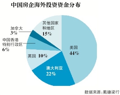 戴德梁行的報告顯示,目前中國企業(yè)平均將44%的海外資金投到美國;第二名為澳大利亞,比例為22%;接下來依次為英國10%,中國香港特別行政區(qū)6%、加拿大3%;其他國家和地區(qū)占15%。與2015年相比,中國投資者對美國和澳大利亞投資熱情持續(xù)增長。其中,在美國的投資比例增長了6%,澳大利亞也增長了2%。
