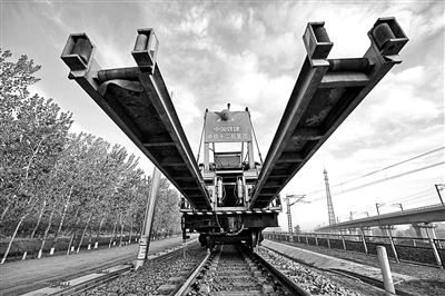 4月15日,中鐵十二局集團的建設(shè)者操作機械在京雄城際鐵路李營段施工。當(dāng)日,北京至雄安城際鐵路開始鋪軌 供圖/新華社