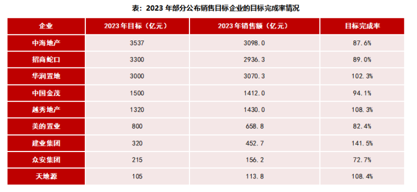 (圖源:中指研究院) 劉水表示,房企銷售目標(biāo)設(shè)定相對保守,典型房企目標(biāo)完成率均值為98.5%。 從典型房企的銷售目標(biāo)來看,僅越秀地產(chǎn)提高了銷售目標(biāo),招商蛇口保持與2022年的銷售目標(biāo)不變。近年來,隨著行業(yè)進(jìn)入調(diào)整期,越來越多企業(yè)不再增加銷售目標(biāo)、追求規(guī)模化發(fā)展,轉(zhuǎn)而通過主動管控銷售規(guī)模,追求更加平穩(wěn)的發(fā)展。