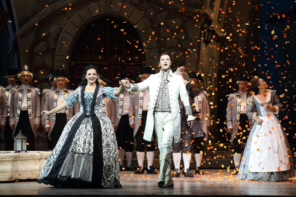 《塞維利亞理發(fā)師》的圓滿結(jié)局之后,費(fèi)加羅的故事還將在國家大劇院的舞臺(tái)上繼續(xù)。8月3日至7日,國家大劇院制作的莫扎特經(jīng)典喜歌劇《費(fèi)加羅的婚禮》也將再度歸來,并將以費(fèi)加羅、蘇珊娜和伯爵之間的情感糾葛詮釋“愛”的真諦。此版《費(fèi)加羅的婚禮》由生于該劇發(fā)生地塞維利亞的著名導(dǎo)演何塞·路易斯·卡斯特羅領(lǐng)銜打造。在本輪演出中,國家大劇院歌劇總監(jiān)、管弦樂團(tuán)首席指揮呂嘉執(zhí)棒,來自蘇黎世歌劇院的男中音歌唱家托馬斯·塔策爾與男中音歌唱家梅杰飾演費(fèi)加羅,著名女高音歌唱家黃英、旅法女高音袁晨星將出演女仆蘇珊娜,男中音歌唱家亞歷桑德羅·盧昂果、張揚(yáng)與女高音歌唱家周曉琳、宋元明等組成群星閃耀的陣容,共同唱響莫扎特筆下贊頌自由與愛情的詠嘆。