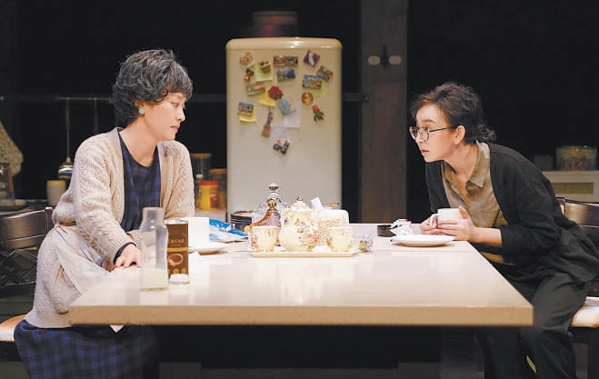 “《晚安,媽媽》沒有大的戲劇沖突,所有的矛盾都來自真實的生活,通過合情合理的人物關系和環(huán)環(huán)相扣的對話,去撥開日常生活之下翻滾的心?!碧茻钚稳荩@是一部沒有借助所謂的“手段”的作品,100分鐘的演出真誠動人,靠的是扎實的舞臺實景和兩位演員牽動肺腑的表演——冰箱里塞滿食物,杯子盛著冒白氣的熱巧克力,水龍頭能擰出自來水,沒有刻意的音樂和效果,整座舞臺如同真實生活的切面。演員需要在“做家務”的同時進行快節(jié)奏、高密度的對話,“手上不能停,但也不能攪戲,比如母女倆換沙發(fā)套的那一段,我們就練了很久很久。”唐燁說。