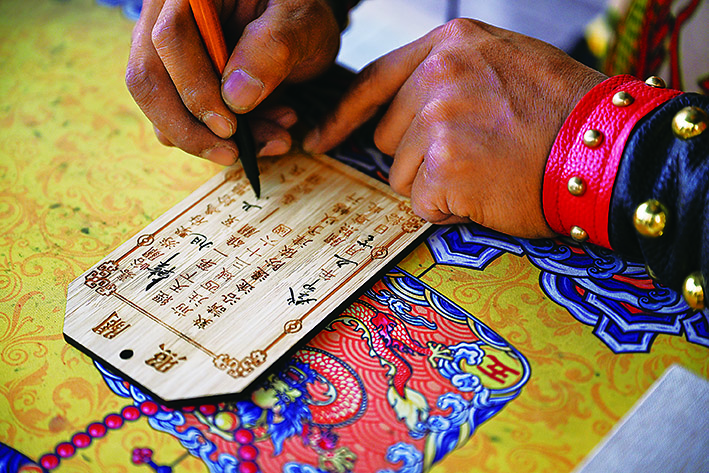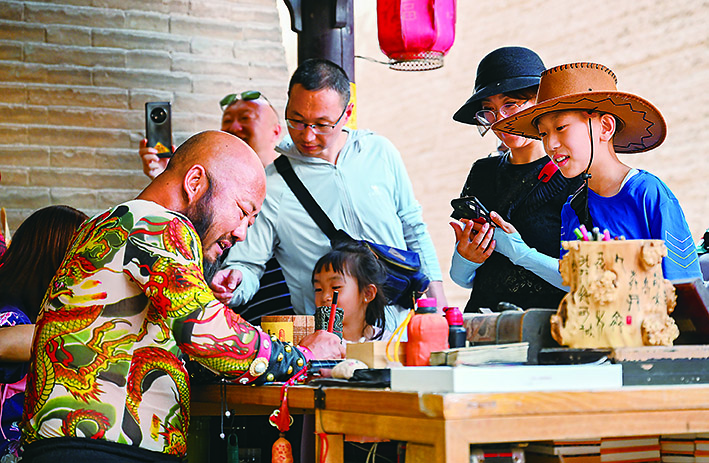 ▲李森在為游客手寫“關(guān)照”(7月14日攝)。本報(bào)記者陳鐘昊攝 新華每日電訊記者陳鐘昊 方欣 劉金海 驕陽(yáng)下,塞外的飛沙走石在干熱的風(fēng)中狂躁。嘉峪關(guān)關(guān)城里,游客們把臉藏在面罩和墨鏡下,試圖躲避日曬與風(fēng)蝕。 幾乎沒有人可以在嘉峪關(guān)的狂風(fēng)中泰然自若,除了“關(guān)長(zhǎng)”李森。 寬額高懸,長(zhǎng)髯掛耳,身著龍紋花臂衣。透過人群縫隙,“關(guān)長(zhǎng)”露出彪形大漢真容。 春秋季節(jié),李森會(huì)換上一身厚鎧甲,形象更接近于嘉峪關(guān)的游擊將軍。 古時(shí),游擊將軍肩負(fù)著檢查商旅使者往來的職責(zé),“關(guān)照”即可理解為彼時(shí)的“護(hù)照”。如今,游客可從李森手中買上一份文創(chuàng)“關(guān)照”,模擬一場(chǎng)告別故土、前往西域的出關(guān)儀式,李森因此得名“關(guān)長(zhǎng)”。 目前,這位43歲的西北漢子是嘉峪關(guān)最火的“網(wǎng)紅”。有的游客寧愿在狂風(fēng)烈日下等候幾十分鐘,只為聽“關(guān)長(zhǎng)”宣告自己“合法通關(guān)”。 將軍“守關(guān)” 在李森的攤位上,放著一本《西域圖志校注》,這是他十多年前在上海書城買的。 還有一本冊(cè)子,全由李森手寫,包含嘉峪關(guān)戰(zhàn)事等文史知識(shí)、生僻字、全國(guó)各城市古地名等。“有些地方幾年才來一個(gè)游客,不常寫,古地名很容易就忘掉了?!?/p> 古地名是李森摸索出的與游客拉近距離的一種方式。這樣的方式似乎在提醒游人,身在關(guān)城中,不妨和他一起穿越歷史時(shí)空。 一位寧波姑娘聽到李森稱她為“明州美女”,愣了兩秒才反應(yīng)過來,接著便向李森行了個(gè)抱拳禮。 來自天津的游客告訴李森,天津除了叫“直沽”“沽上”,也曾叫“津沽”。李森聽后,連忙將其補(bǔ)寫到冊(cè)子里。 在“打卡”風(fēng)行的當(dāng)下,不是每個(gè)游人都能慢下來沉浸在歷史的敘事中。但與“關(guān)長(zhǎng)”的三兩對(duì)話,能激發(fā)每個(gè)人心中的那一抹文化鄉(xiāng)愁。 有人驚嘆,“關(guān)長(zhǎng)”模樣糙,講起話、寫起字來卻“書通古今”。 今年6月,一條李森告訴游客“合影不收錢”的視頻,竟被配上了感動(dòng)的音樂,在網(wǎng)絡(luò)上引起熱議。 “嘉峪關(guān)的宣傳不能只靠我們,得讓游客來幫忙宣傳啊?!崩钌f,如果他穿上古裝,合影就要收費(fèi),嘉峪關(guān)還怎么擴(kuò)大宣傳呢? 從2001年起,李森斷斷續(xù)續(xù)在關(guān)城景區(qū)當(dāng)旅游紀(jì)念品售貨員。那時(shí)來旅游的人很少,李森有時(shí)一天也開不了張。當(dāng)時(shí)的條件簡(jiǎn)陋,攤位上僅一桌一椅,不像現(xiàn)在搭起了棚子,能遮風(fēng)蔽日。 “一張桌子,十年”。李森與風(fēng)中黃沙做伴,時(shí)間久了,能體會(huì)到過去戍邊將士的滋味。 他索性蓄起胡須,之后又縫制出一套鎧甲,扮成“游擊將軍”,給游客們演繹古時(shí)簽發(fā)“關(guān)照”的場(chǎng)景。 “癸卯年五月二十七,上京商賈……經(jīng)嘉峪關(guān)前往西域批發(fā)雪糕,特發(fā)此照、合法通關(guān)!” “簽發(fā)”一張“關(guān)照”,李森要用毛筆或軟筆寫上游客的姓名、家鄉(xiāng)的古地名,蓋上自刻的印璽,還要詢問游客“出關(guān)”的理由。有時(shí),游客反應(yīng)不過來,李森會(huì)編一個(gè)無厘頭的理由,讓他們“蒙混過關(guān)”。 日復(fù)一日,李森坐在城樓下,竟入了戲:是不是上輩子我就是嘉峪關(guān)的游擊將軍? 他試圖在家族史中尋找答案。姑姑曾說,爺爺?shù)臓敔斒羌斡P(guān)的一位將軍。光緒八年,一位李姓游擊將軍在嘉峪關(guān)上任,叫李正魯。 雖沒有考證下去,李森冥冥之中覺得,自己“守關(guān)”就是“守根”。 事實(shí)上,李森12歲才成為嘉峪關(guān)人。那一年,李森跟隨在酒泉鋼鐵公司工作的父親,從武威市古浪縣的老家遷出,成為嘉峪關(guān)這座移民城市的一員。 小時(shí)候,李森和伙伴們常在關(guān)城邊左宗棠栽種的古樹下玩耍,也曾爬上不遠(yuǎn)處的長(zhǎng)城,眺望祁連山上的白雪。 “山北山南總是烽”的壯闊中,蓄蘊(yùn)著他孤煙般綿長(zhǎng)的雄關(guān)情。 文化鄉(xiāng)愁 16歲那年,初中畢業(yè)的李森離開了嘉峪關(guān)。 那是一場(chǎng)從山到海的遠(yuǎn)游。李森想去沿海城市闖蕩,他照著地圖,計(jì)劃沿隴海鐵路去連云港,后來聽說青島的機(jī)會(huì)更多,便決定先去青島謀生。 李森不喜歡固定的工作,輾轉(zhuǎn)各地打零工。幾年后,他找到了自己的定位:江湖藝人。在扇面上作畫、在木頭上篆刻、用電烙鐵燙畫……這些手藝?yán)钌耙豢幢銜?huì)”。在異鄉(xiāng),他靠無師自通的一身手藝吃飯。 年輕氣盛的李森與骨子里安土重遷的秉性對(duì)抗著,有的同鄉(xiāng)干不下去回了老家,他卻想著“怎么也要干得‘差不多’才回”。 北京潘家園、上海城隍廟、廈門鼓浪嶼……李森行遍九州,還到過東南亞、中亞、中東等地。江湖藝人圈子小,營(yíng)生靠口耳相傳,用他的話說,哪兒有場(chǎng)子,大家伙就往哪兒去。 李森相信付出總有回報(bào),一切只是時(shí)間問題。這不僅體現(xiàn)在手藝上,也是他為人處世的信條。找到了場(chǎng)子,他會(huì)招呼兄弟們一起干;一天下來沒掙幾個(gè)錢,但吃肉喝酒從不虧待別人。 走闖江湖,錢花了掙、掙
