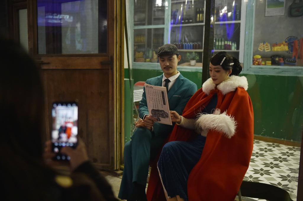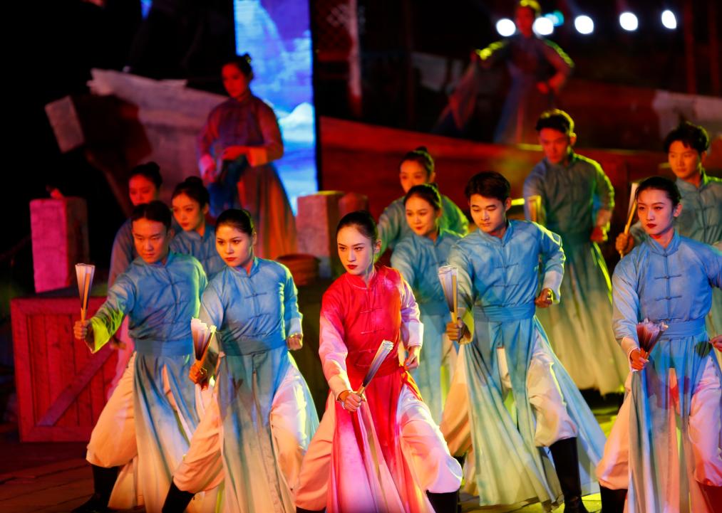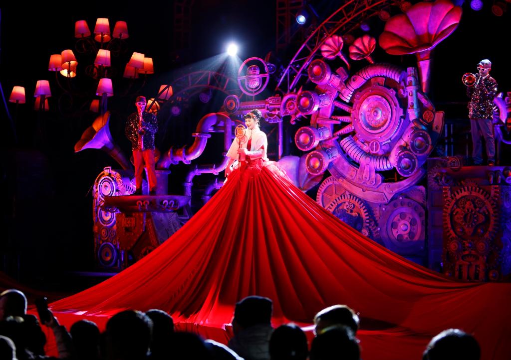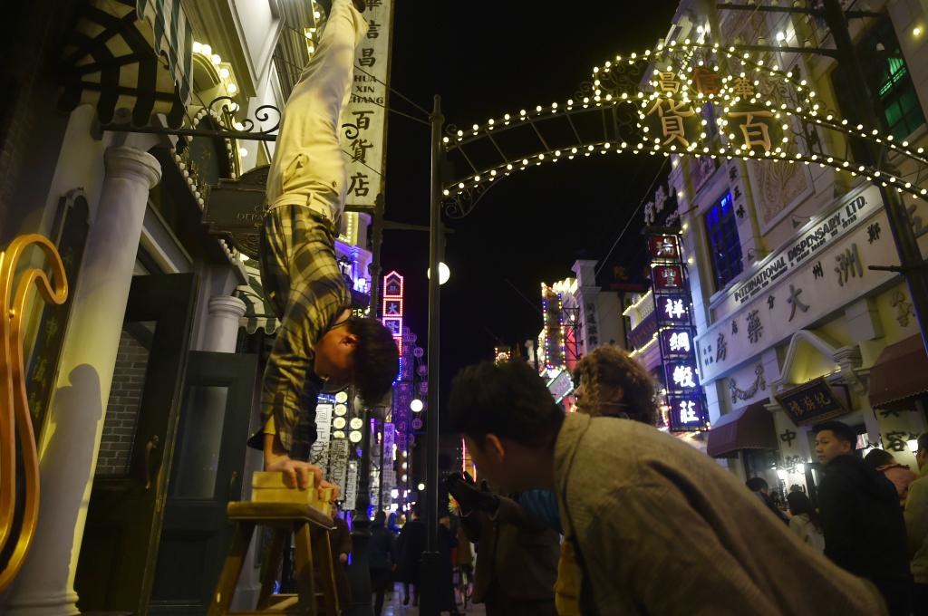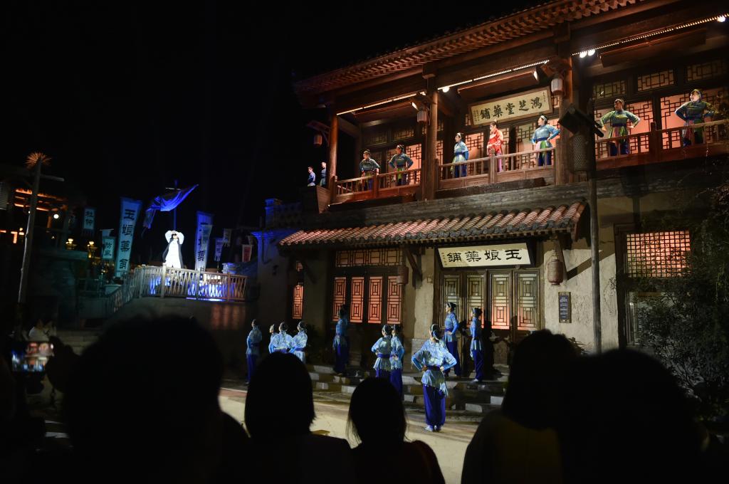 11月16日晚,演員在建業(yè)電影小鎮(zhèn)內為觀眾表演。新華社記者 戴翹楚 攝