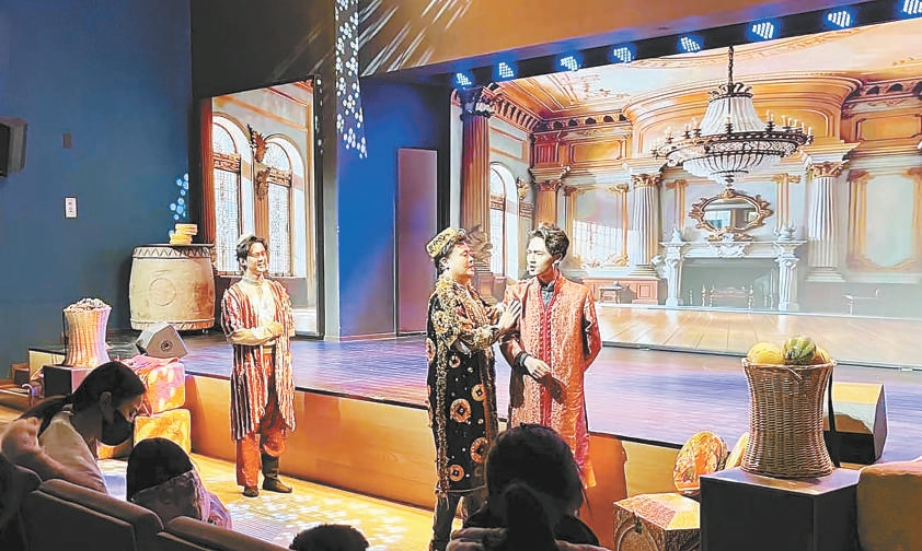 “小朋友們,我們把金幣種在哪里了?”舞臺(tái)上,“阿凡提”一揮手,小觀眾們齊聲應(yīng)和,跟隨他和小毛驢在劇場(chǎng)里開(kāi)啟了熱火朝天的尋寶之旅。多年來(lái),幽默機(jī)智的阿凡提是幾代小朋友心中的英雄,日前,他走出故事,來(lái)到通州臺(tái)湖演藝小鎮(zhèn)北投演藝酒店的劇場(chǎng)里。