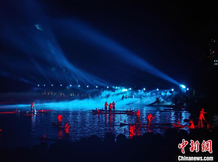 (資料圖)大型山水實(shí)景演出《印象·劉三姐》現(xiàn)場。 鹿錦 攝
