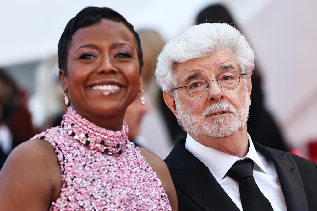 5月25日,在法國南部城市戛納舉行的第77屆戛納電影節(jié)上,美國導演、編劇、制片人喬治·盧卡斯(左)抵達閉幕式紅毯。新華社記者 高靜 攝