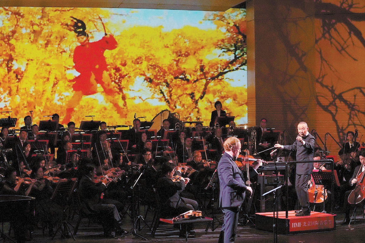 譚盾指揮《武俠三部曲》交響音樂會劇照。北京日報記者 方非攝