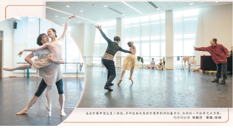 上海芭蕾舞團已復工排練,多部經(jīng)典及原創(chuàng)芭蕾舞劇將輪番登臺,為新的一年拉開藝術序幕。均本報記者 張挺 攝 制圖:張繼