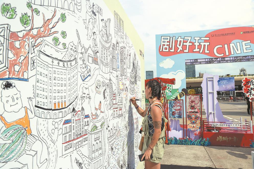 胡子拉碴的警員阿Sir、動畫電影《馴龍高手》中的無牙仔、充滿懸念的“醬園弄現(xiàn)場”……在上海展覽中心,立有一塊由插畫師Rosá玫瑰與市民共創(chuàng)的“我的電影故事”畫板,一筆筆手繪中埋下很多城市彩蛋與弄堂故事,更有影迷在空白插畫區(qū)記錄下自己的“私影史”。畫板右上角有一處方方正正的電影院簡筆畫,連進場路線都用火柴人標注清楚,Movieland小程序工作人員韓語指著這處手繪告訴記者:“一位影迷過來,說‘怎么能沒有我們滬北電影院呢?我也要畫一個’,他就趴在畫板畫了快半小時,昨天太陽那么大,背都曬紅了?!?/p>