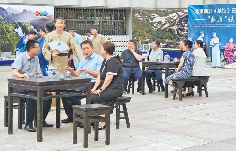 “喲,這位爺,您里邊請(qǐng)!”昨天下午,北京北站下沉廣場(chǎng)上,一位位身著戲服的曲劇演員登場(chǎng),邀請(qǐng)過往行人移步至一旁的“茶館”品茶。旅客被演員帶入沉浸式表演中,現(xiàn)場(chǎng)不時(shí)發(fā)出笑聲和喝彩聲。原來這是北京市重點(diǎn)站區(qū)管理委員會(huì)北站辦與北京市曲劇團(tuán)聯(lián)合策劃的“黨建引領(lǐng)·京韻暢行”快閃活動(dòng)。此次快閃活動(dòng)通過沉浸式表演,將北京曲劇《茶館》片段融入旅客和市民的出行場(chǎng)景。