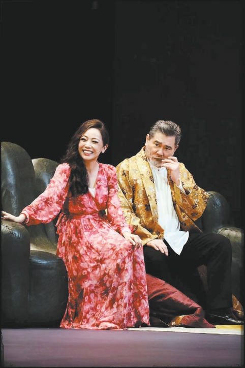 舞臺(tái)的時(shí)間畢竟有限,不能雨露均沾到每個(gè)角色身上,然而《鱷魚》團(tuán)隊(duì)對(duì)次要人物的描摹與創(chuàng)作,也展現(xiàn)出只有經(jīng)驗(yàn)成熟、全情投入的劇團(tuán)才能抵達(dá)的高度。趙太太的角色占比篇幅不大,“未見(jiàn)其人,先聞其聲”的獰笑,卻給觀眾留下很深的印象。王菁華采用了漫畫式的表演技巧,激活了人物對(duì)他人悲喜不管不顧的冷漠狀態(tài),貪小便宜的舉動(dòng)又顯示出三分“壞得可愛(ài)”,讓人忍不住聯(lián)想這個(gè)寥寥幾筆的女人背后的故事:她也曾是容貌姣好、手段狠辣的美人,如今只能在牌桌上靠手氣度日子,在他人家里聽(tīng)墻角、編撰故事來(lái)發(fā)財(cái)。飾演秘書的李宗雷,在《紅樓夢(mèng)》“葫蘆僧亂判葫蘆案”中,找到了下位者在權(quán)勢(shì)面前左右逢源、見(jiàn)風(fēng)使舵的坐姿、表情等特征,加以模仿,竟真的讓人看起來(lái)又氣又畏。