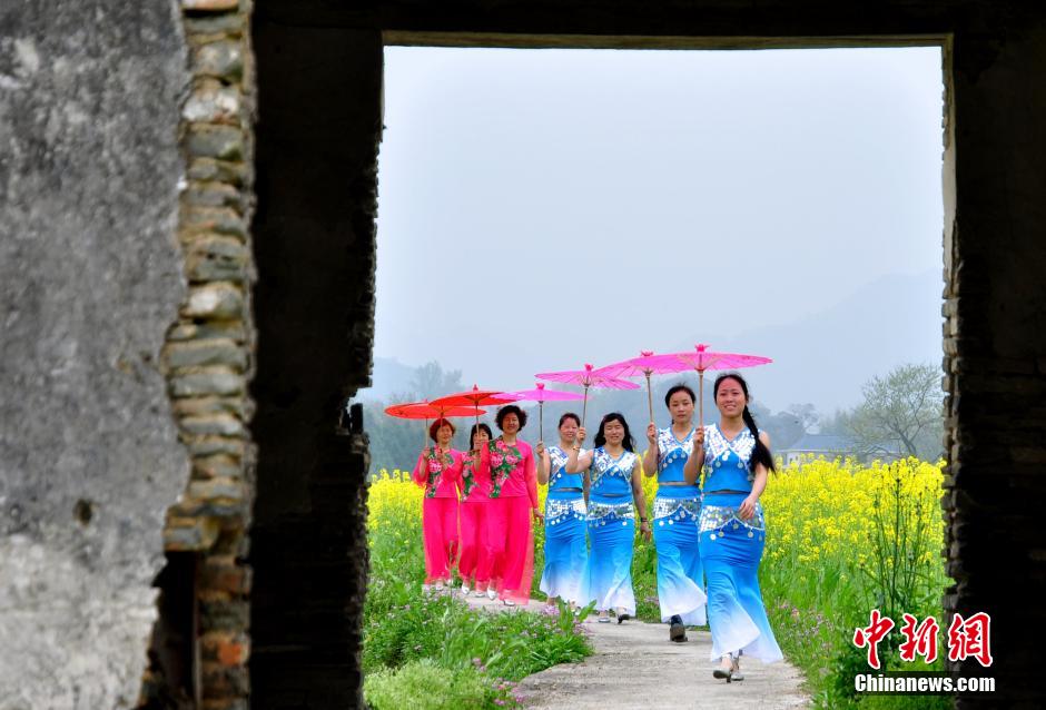3月20日,江西省德興市??阪?zhèn)杜村婦女在田間花?!白咝恪?。當(dāng)日,江西德興市海口鎮(zhèn)杜村一批家庭婦女以千畝油菜花海為舞臺,展示自己的才藝形象,希望宣傳家鄉(xiāng)的自然生態(tài)與人文歷史,擴(kuò)大旅游知名度和影響力。德興市??阪?zhèn)杜村交通便利,自然風(fēng)光優(yōu)美,村內(nèi)有歷史古跡和名木古樹。 胡敦煌 攝