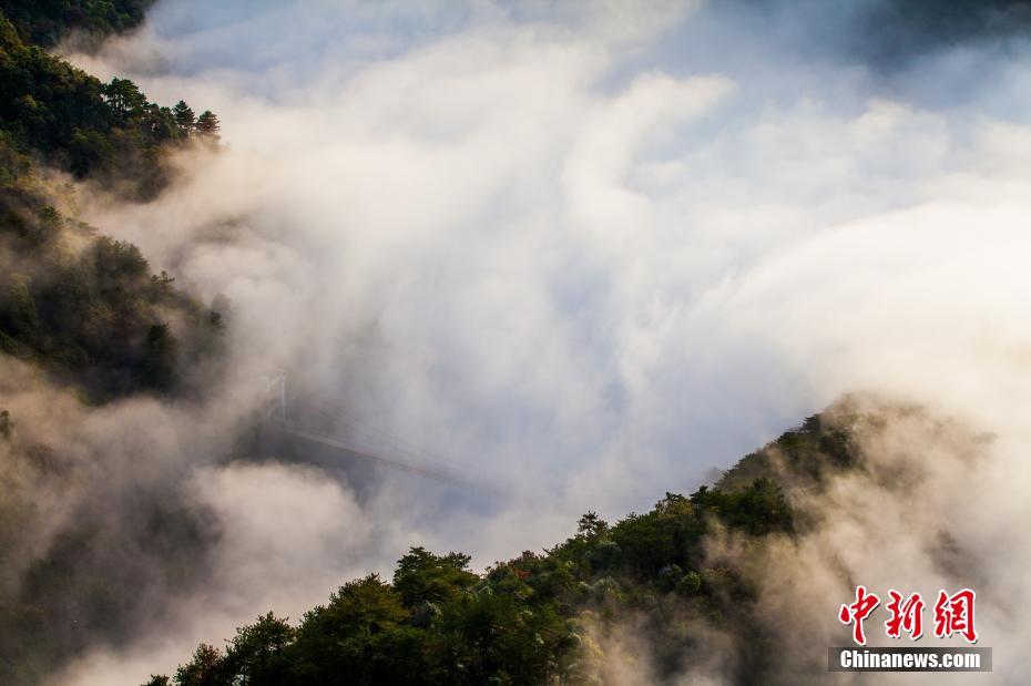 10月30日,素有“匡廬奇秀甲天下”之美譽的江西廬山石門澗景區(qū)出現(xiàn)云霧景觀,崇山峻嶺間時而云霧繚繞,時而云收霧斂,如置身仙境一般。 衛(wèi)岌 攝