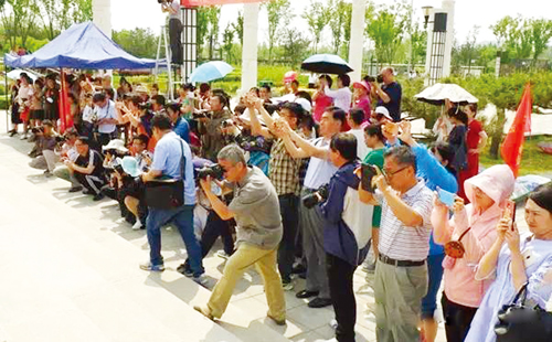 5月21日上午,忻州市數(shù)碼攝影家協(xié)會主辦的“秀美云中河”攝影大賽啟動儀式在云中河景區(qū)舉行。來自忻州紅歌合唱團、中國旗袍專業(yè)委員會忻州旗袍分會、忻州杜娟瑜伽文化傳播中心、天韻音樂中心、忻州市新時代水兵舞團等社團組織進行了精彩的助興表演。忻州市數(shù)碼攝影家協(xié)會會員及攝影愛好者共200余人參加了啟動儀式。 活動以“秀美云中河”為主題,以云中河景區(qū)景觀為背景,多方位多視角展示園林獨特的自然景觀和文化內(nèi)涵,廣泛征集攝影專業(yè)人士和攝影愛好者捕捉到的云中河景區(qū)生態(tài)綠化、四季景觀、園事花事活動、景區(qū)文化生活、休憩娛樂場景等,體現(xiàn)和展示云中河景區(qū)的發(fā)展成就、人與自然和諧共處的攝影作品。圖為攝影愛好者現(xiàn)場拍照(記者 徐國華 攝影報道) (責任編輯:李冬梅) |