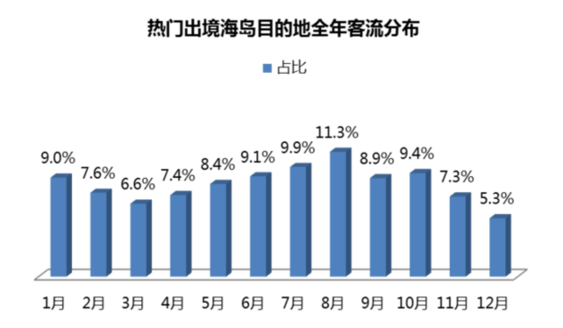 暑期是海島游出游旺季,國內海島游客流季節(jié)波動明顯