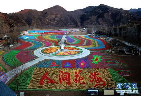 從空中俯瞰北京市密云區(qū)車道峪村用風(fēng)車打造的“人間花海”主題景觀(12月5日攝)。近日,北京市密云區(qū)車道峪村村民用約120萬只風(fēng)車,打造出一片占地500畝的“風(fēng)車海”,包含多個主題。該景觀于12月8日正式亮相。新華社記者 羅曉光 攝
